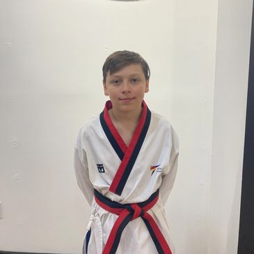 My Taekwondo career started October 17 2017 when I was 9 years old with Schutz Martial Arts. As practice become a new normal for me, I slowly started climbing the ranks from white on Dec 2 2017 to Jr black belt on July of 2021. I was then given the opportunity of a few weapon options, in which lead me to the sword. The sword then led me to join Kumdo “The Way of the Sword” in October of 2021. I am currently a 5th Gup in Kumdo. Since the day of my career in Taekwondo, I have joined many tournaments in the weapons, sparring, board breaking and the forms categories. In doing so, I have won trophies and medals of various designs and placings. Even though I have done many tournaments, I enjoy helping behind the scenes. Taekwondo and Kumdo have supplied challenges and different obstacles to persevere. My goal is to continue climbing the ranks until I no longer can. I have learned many different technics and many more to learn to pass down in the future.